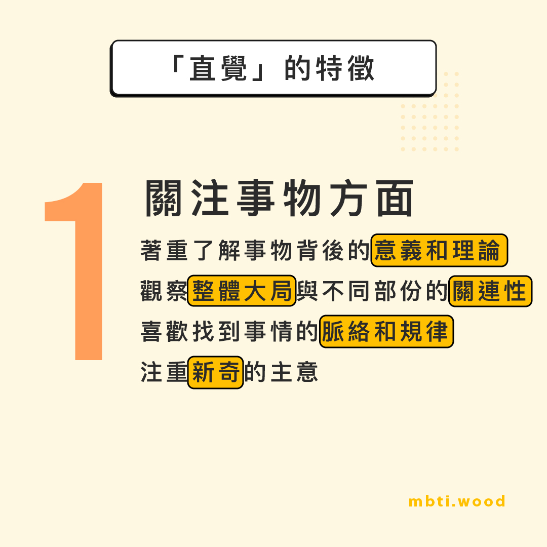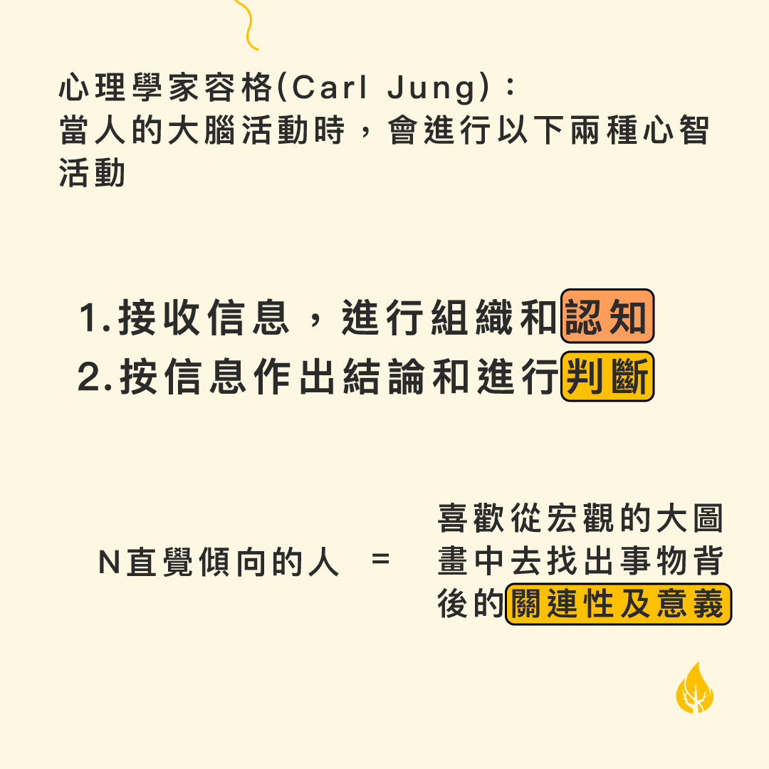 心理學家容格(Carl Jung)觀察到人類有不同的行為,是因為各種天生不同傾向的人在運用心智方面會有所不同,他觀察到當人的大腦活動時,會進行以下兩種心智活動: 接收信息,進行組織和認知 按信息作出結論和進行判斷 認知和判斷的方式十分影響一個人的學習模式、工作取向、與人相處以致其他方面的發展,能掌握認知功能和判斷功能的運用,對了解自己在不同環境下如何發展自我的潛在價值有重要的作用。 容格發現,人在認知的過程中會分為「實感」(Se