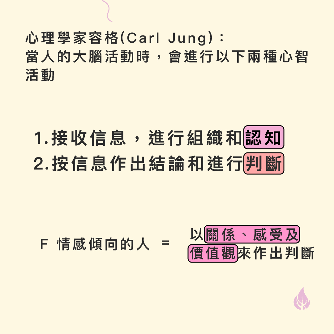 榮格發現人在判斷的過程中分為「思考」(Thinking)和「情感」(Feeling)兩種