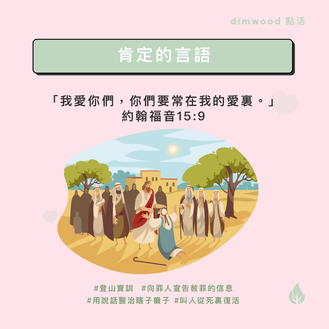 聖誕節,一個充滿愛的節日,是記念二千多年前一位特別人物的誕生,祂的誕生象徵著有一位神對我們世人的愛。祂就是耶穌基督,在聖經中所描述的耶穌,是用甚麼愛的語言表達對世人的愛? 1.肯定的言語 「我愛你們,你們要常在我的愛裏。」約翰福音15:9 耶穌會用說話向世人宣告神的愛,祂既會在山上向五千人傳講天國的信息,也會向在失望和懷疑中的人作出鼓勵。祂曾向一位女兒病得幾乎要死的父親作出信心的安慰、向在眾人面前被控告的女人宣告赦罪的信息、向曾三次不認