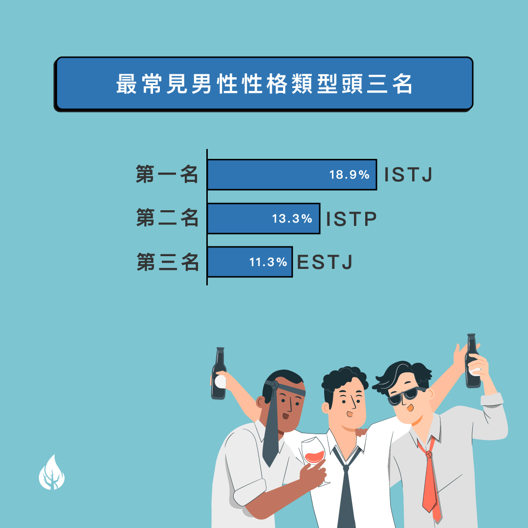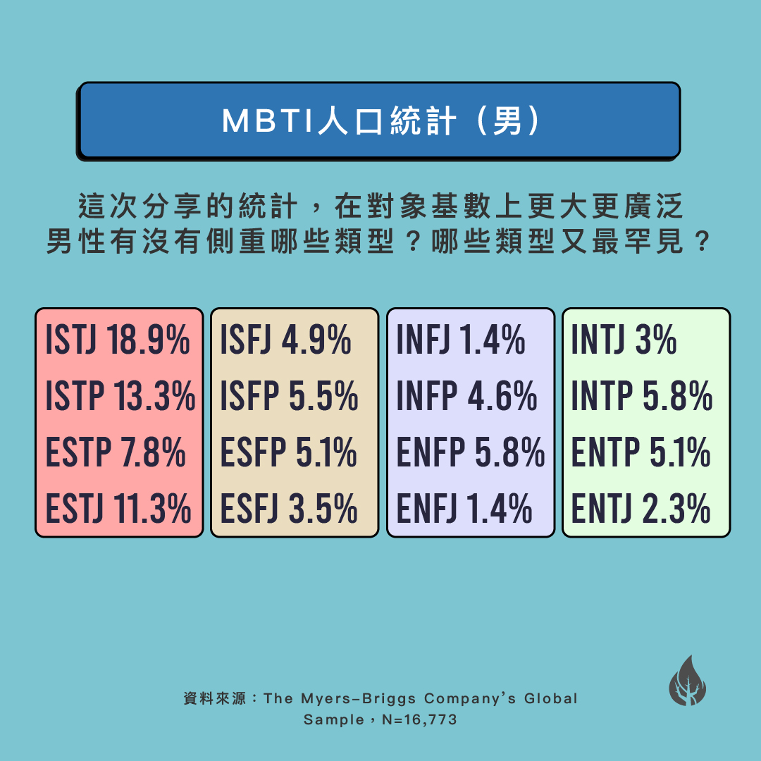 男性在統計結果的發現中,有沒有側重哪些類型?哪些類型又最罕見?讓我們來看看。