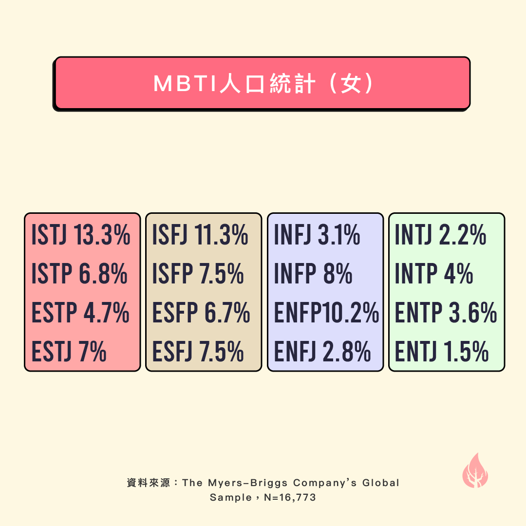女性在MBTI中性格類型的分佈,看看跟男性的有甚麼不同?