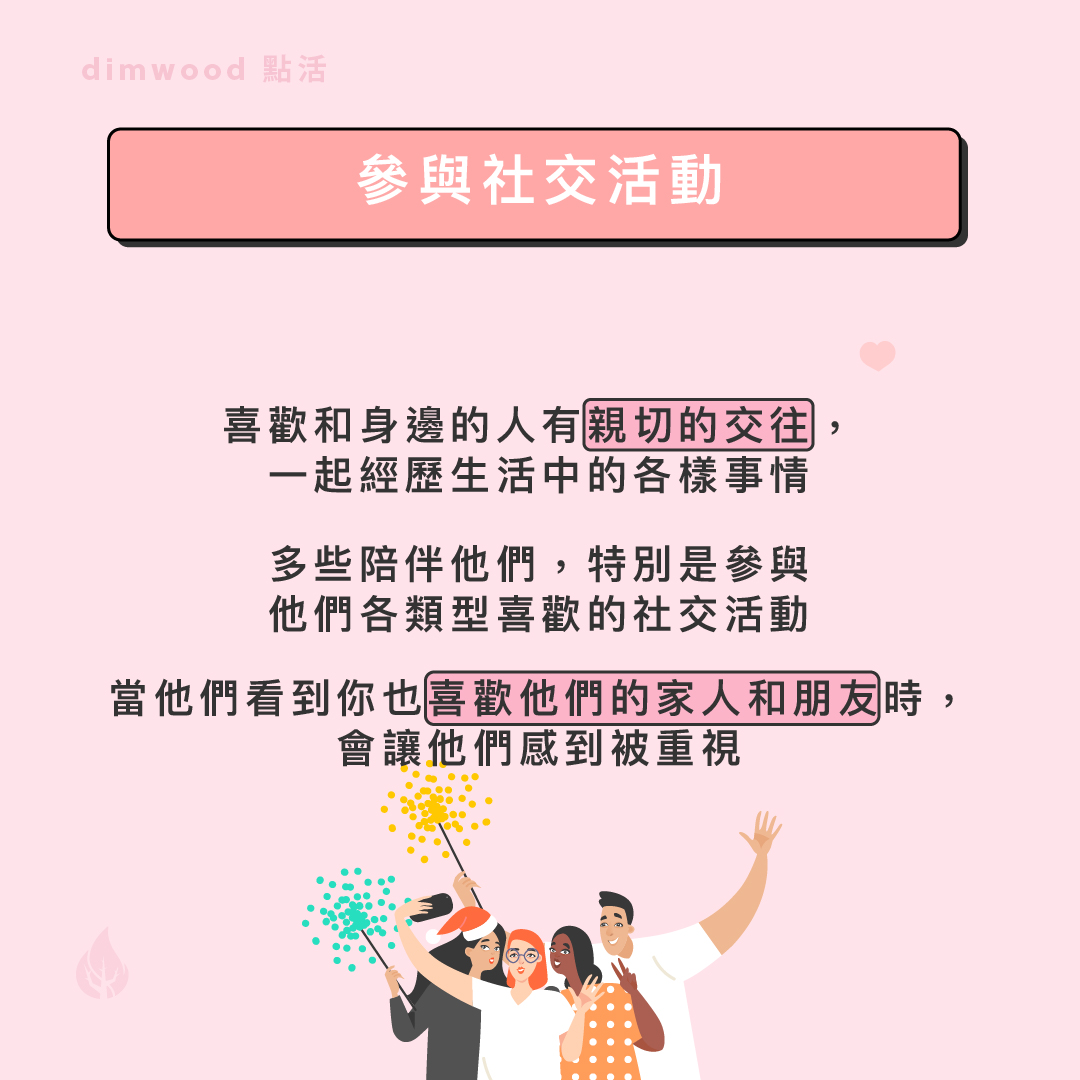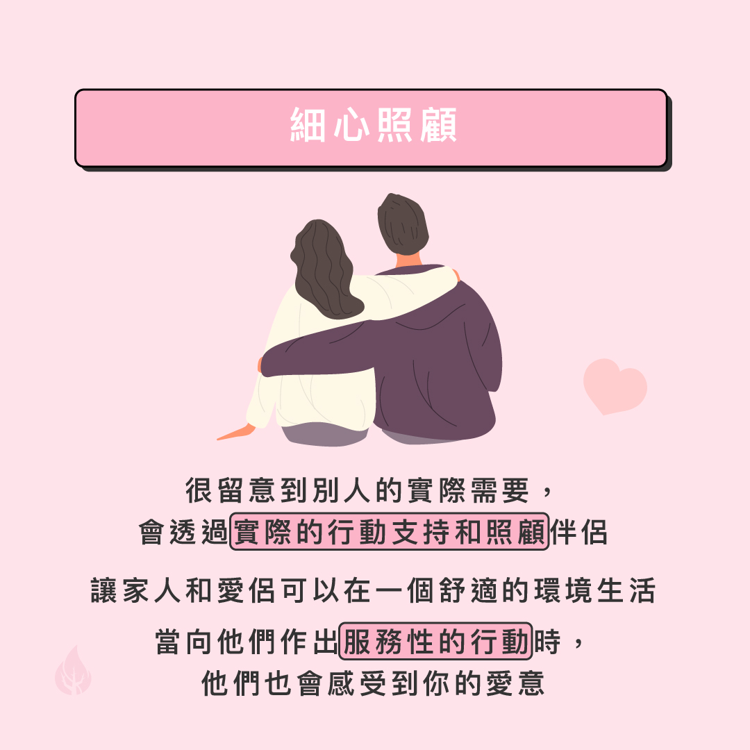 ESFJ是待人親切、熱情和照顧別人需要的人,他們十分著重用言語和行動去向重視的人表達關心,因此在情感上他們會用以下的方式去表達和接收愛意。 一.細心照顧ESFJ很留意到別人的實際需要,並會透過實際的行動支持和照顧伴侶,包括在生活上的需要。因此他們會努力做好日常的生活瑣事,將家務管理得井井有條,留意及添置家人需要的生活用品,讓家人和愛侶可以在一個舒適的環境生活,使所愛的人生活得更輕鬆愉快。同樣當向他們作出服務性的行動時,他們也會感受到你的