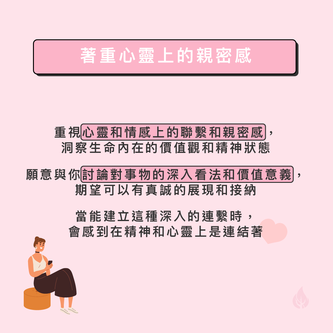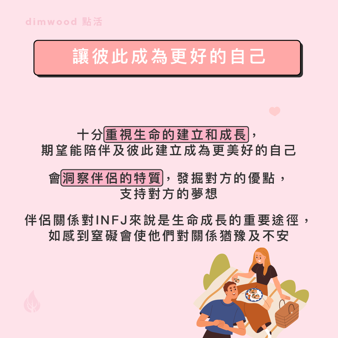 INFJ是親切、溫柔、追求關係和諧的人,他們會期望以深入的溝通和連繫來與所愛的人建立關係,因此在情感上他們會用以下的方式去表達和接收愛意。 一.著重心靈上的親密感 比起有一些性格類型期望伴侶常陪伴在身旁,INFJ更重視的是在心靈和情感上的聯繫和親密感。他們很重視要洞察生命內在的價值觀和精神狀態,從而作出深刻的省思。當他們愛一個人時會願意與你討論這些題目,例如人生目標,生命的意義和價值觀,對事物的深入看法等,不一定大家要有絕對的共識,但卻