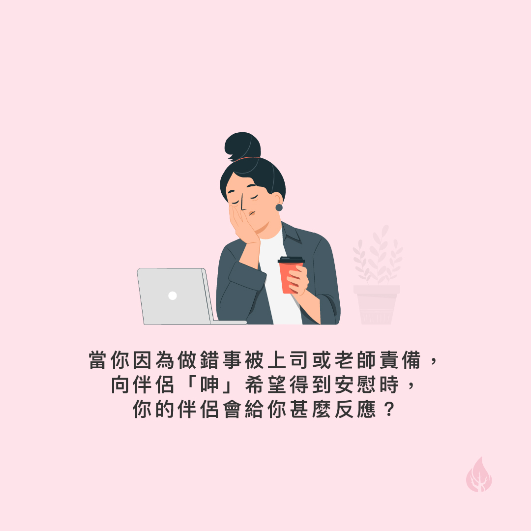 當你因為做錯事被上司或老師責備,向伴侶「呻」希望得到安慰時,你的伴侶會給你甚麼反應?