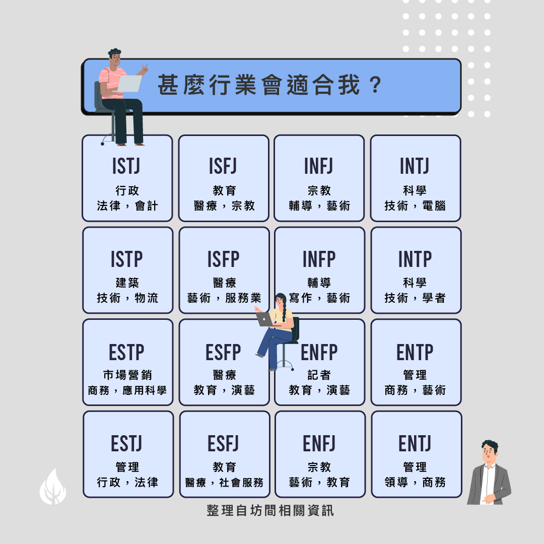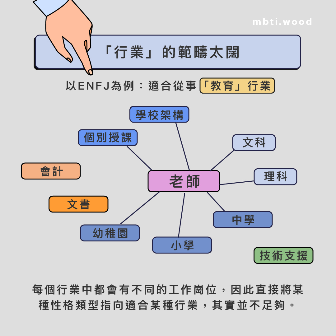 當描述某一性格類型適合某種「行業」時,當中的範疇太闊,不代表就會知道該type適合做甚麼工作。